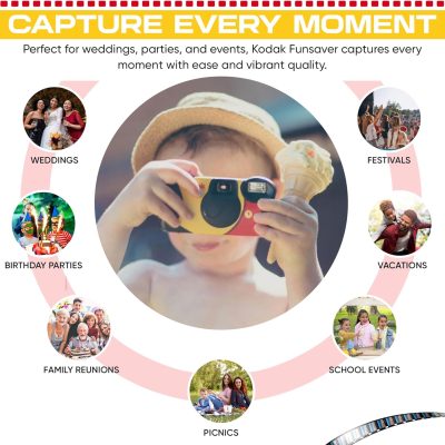 Kodak Funsaver Disposable Camera Bulk one time Single use 7-Pack 27exp 35mm Camera Bundled with Balveli Premium Microfiber Cloths – Bulk Kodak Disposable Film Camera 35mm