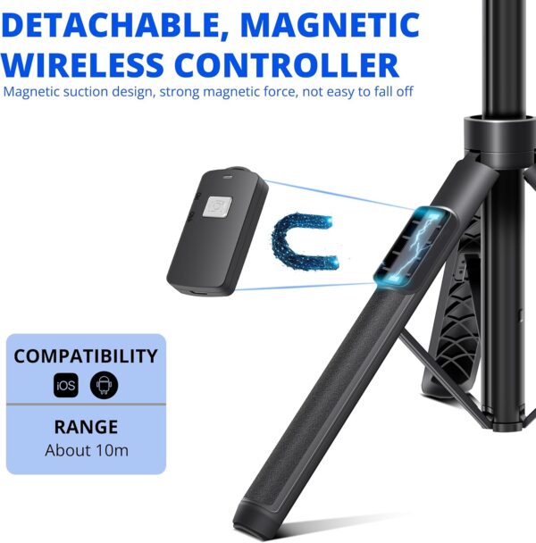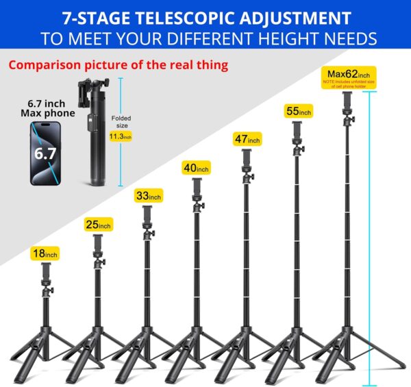 BZE Selfie Stick,62 inches Long Extendable Selfie Stick Tripod, Phone Tripod with Wireless Remote Shutter,Group Selfies/Live Streaming/Video Recording Compatible with All Cellphones