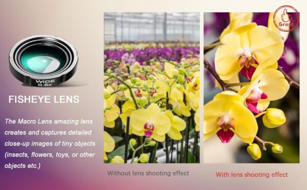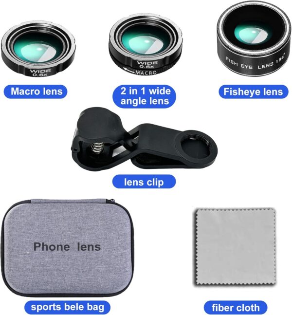 Transform your smartphone photography with the Phone Camera Lens Kit. This 3-in-1 lens set includes a wide-angle lens for capturing more in your frame, a macro lens for detailed close-up shots, and a fisheye lens for a unique 198° perspective. Compatible with most smartphones, this kit is perfect for capturing stunning landscapes, intricate details, and creative shots. Take your photography to the next level with the Phone Camera Lens Kit.