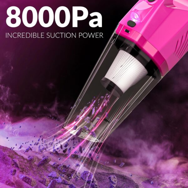 Introducing the THINKWORK Car Detailing Kit Interior Cleaner, the ultimate all-in-one solution for keeping your car looking and feeling brand new. This comprehensive kit includes an 8000PA cordless pink handheld vacuum cleaner, a car interior detailing brush set, and various pink car accessories, making it the perfect gift for women who love to keep their vehicles in top condition.